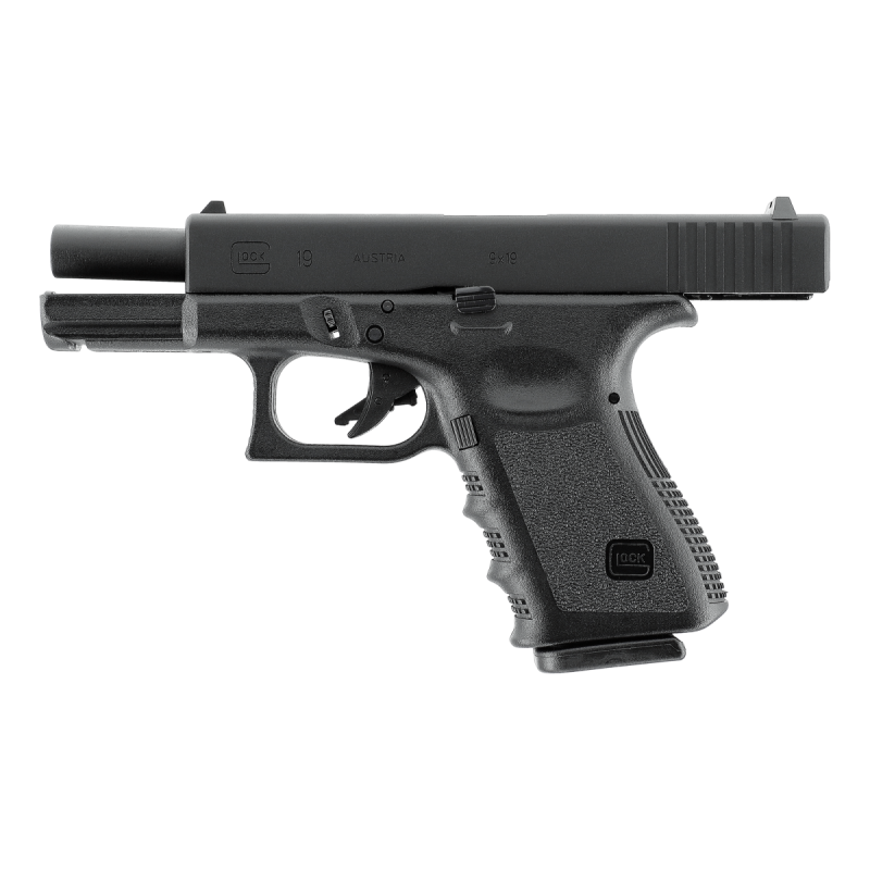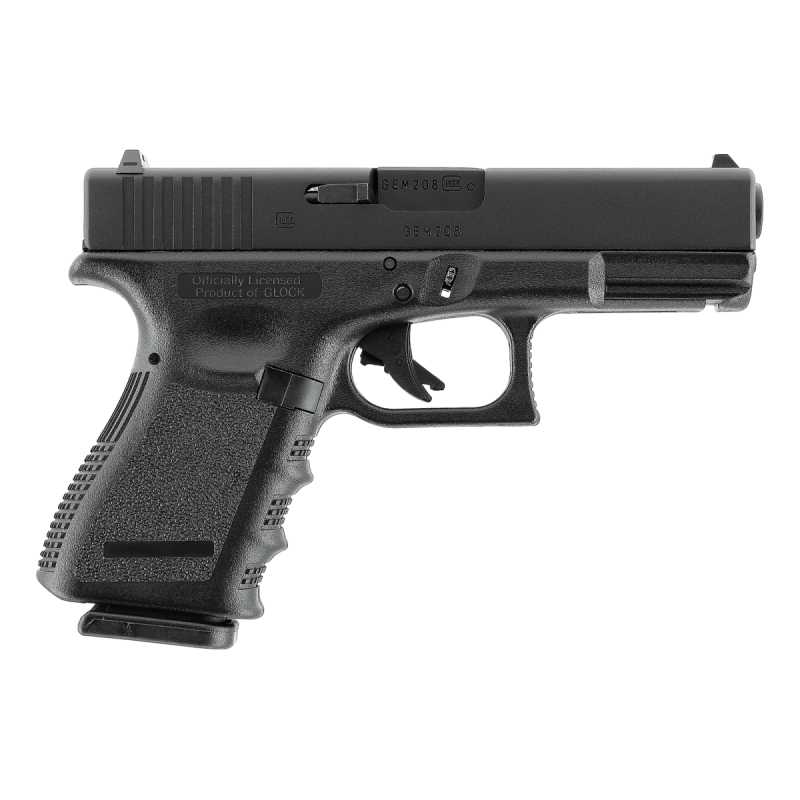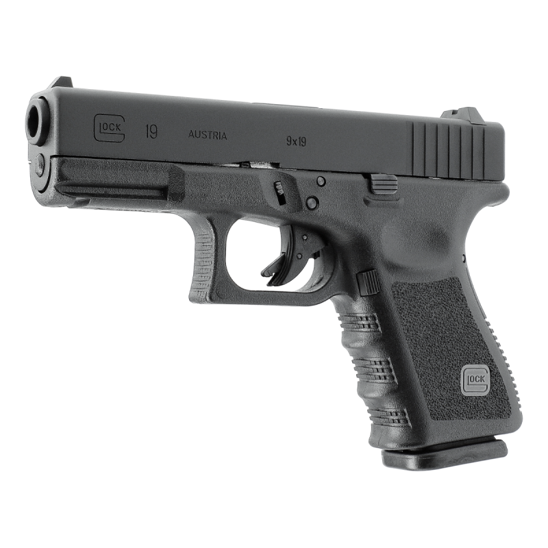 Le Glock 19, version compacte du Glock 17, est une réplique airsoft sous licence, alimentée au gaz. Sa culasse en métal lourd procure un poids et un ressenti proches de l'original, et le système blowback restitue un recul convaincant à chaque tir. Le canon et la carcasse sont plus courts que sur le Glock 17, sans compromis sur la qualité ni la prise en main. La réplique se démonte entièrement pour faciliter l'entretien, et le hop-up réglable assure une trajectoire stable sur longue distance.