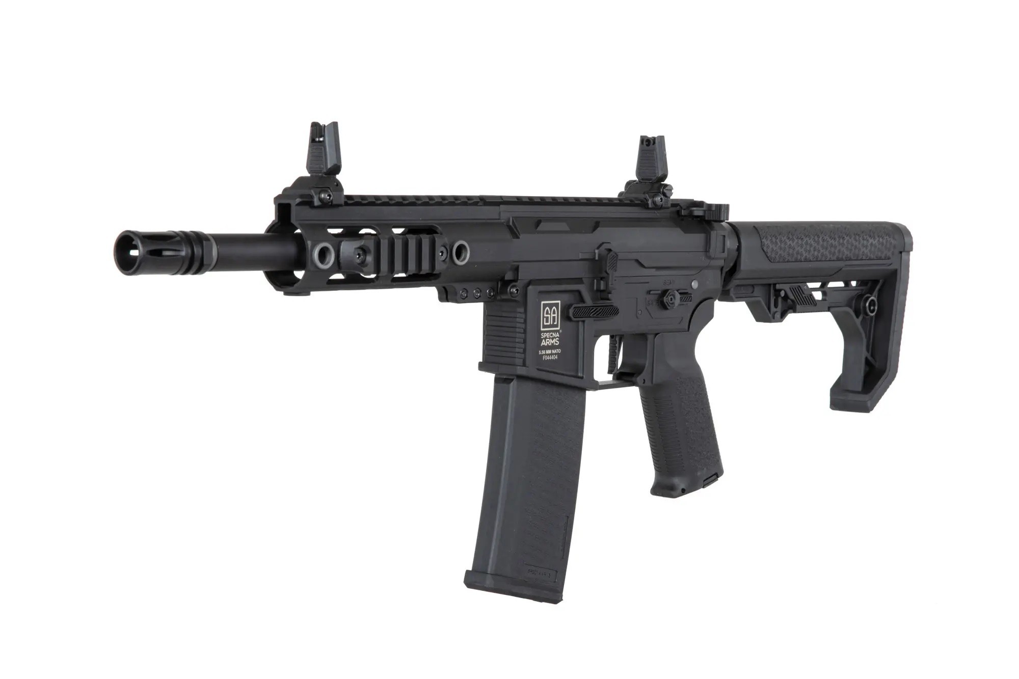 Le canon est une conception exclusive de Specna Arms alliant qualités esthétiques et ergonomie élevée. Chaque élément a été fabriqué et monté avec une attention particulière aux détails. Le modèle est doté de manipulateurs agrandis des deux côtés (sélecteur et déverrouillage du chargeur) et d'un verrou de culasse fonctionnel.