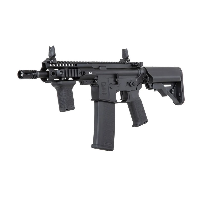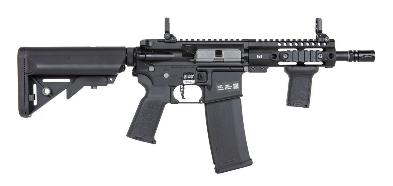 Caracteristiques externes : - Garde main métal - Conception Full Metal sauf chargeur, poignee moteur et crosse - Peinture << Nano Coated >> anti-rayures - Queue de detente reglable mecanique et bluetooth - 2 Chargeurs S-Mag Mid-Cap 125 BBs - Poignee verticale